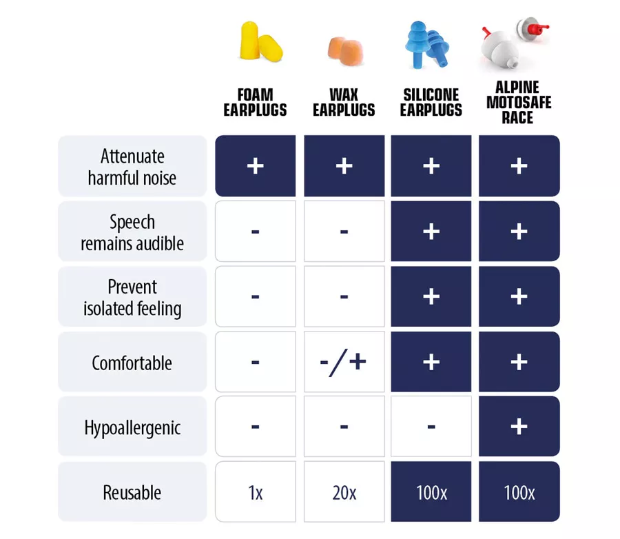 - zvuky z okolní dopravy a komunikačních systémů zůstávají dostatečně slyšitelné díky filtrům AlpineAcousticFilters™