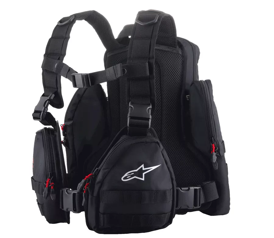 - Modularita batohu zaistená vďaka odnímateľným zakladačom v zadnej časti, na bokoch av oblasti hrudi.