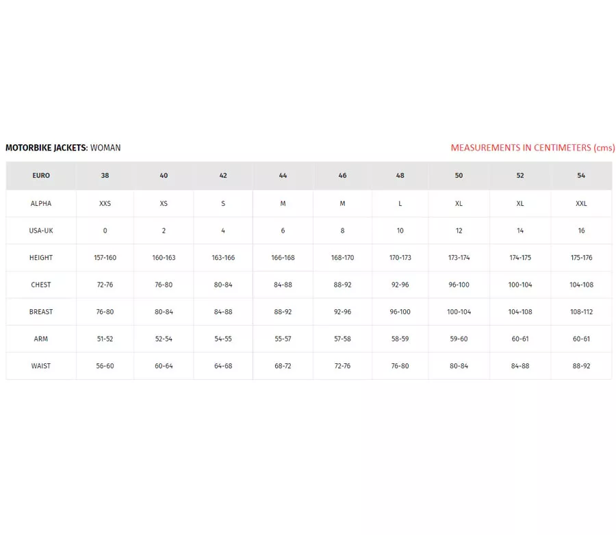 (cm)51-52 52-54 54-55 55-57 57-58 58-59 59-60 60-61 60-61 Dámské velikosti kombinéz DAINESE