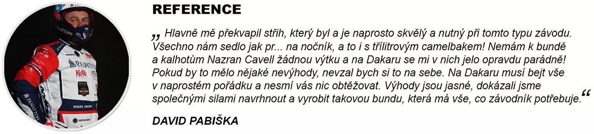Vrchný materiál: - Polyester MAXTEX 600D, Polyester MAXTEX 300D, Ribstop Polyester, Samtex Polyester TECH-AIR® COMPATIBLE - ergonomicky navrhnuté pre nosenie s nafukovací vankúš vestou Tech-Air® 5 CHEVROON ARH 5.0 - originálne špeciálna príprava na chrbte pre Alpinestars Tech-Air® 5 vestu, ktoré zaistia maximálne pohodlie a funkčnosť - zapísaný do registra priemyselných vzorov spoločenstvo EÚ vyvinutého spoločnosťou Bikers Crown podšívka: - Recyklovaný polyester + 3D Mesh Vnútorná membrána: - jedným zipsom odnímateľná, nepremokavá, vetru-vzdorná a priedušná membrána GT-150 HYDRO: (nepremokavosť / vzdušnosť) 10 000 g / m2 / 24hrs - Nepremokavý hlavný predný zips Chrániče: - súčasťou vybavenia sú Sas-Tec homologované CE level 2 chrániče lakťov a ramien, príprava na chrbtový chránič viditeľnosť: - reflexné prvky na hrudi, chrbte a ramenách ventilácia: - 2 predné ventilačný vrecká komfort: - Golier -s háčikom na upnutie pre uchytenie roztvoreného goliera - Strečové panely nad lakte a za ramenami pre zvýšené pohodlie - Sťahovacie pásky na úpravu obvode rukávov a bundy v páse vrecká: - 2 väčšie predné vrecká na zips a 2 hlboké vrecká s chlopňou - 4 predné vrecká na zips na mobil a doklady - Zadné veľké vrecko na ukladanie mapy, alebo pláštenky - 3 vnútorné vrecká na mobil a doklady - Vnútorné mesh vrecko s čistidlom na plex - ICE-púzdro s identifikačnými a zdravotnými informáciami pre záchranárov v prípade nehody - Zips na pripnutie k nohaviciam Bikers Crown dostal pre svoje značky Nazran Motorcycle Fashion a Trilobite Premium Aramid Fashion ako jediný výrobca na svete súhlas od firmy Alpinestars pre používanie vankúša Tech-Air 5 do svojej výroby oblečenie pre bežné motorkárov. Celý projekt a špecifický vývoj oblečenie trval veľmi dlho a bol vykonávaný súbežne s vývojom Tech-Air 5.