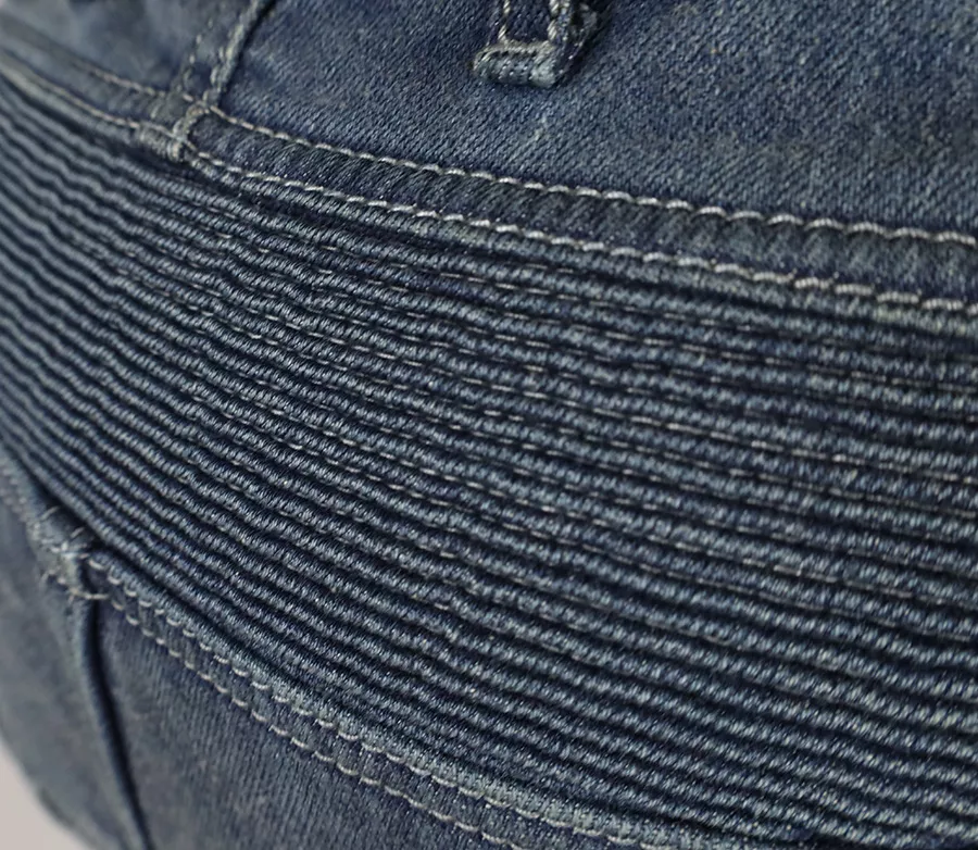 Nová generácia syntetických a polyetylénových vlákien umožňuje zmiešať Polyester, Nylon, Elastan a ďalšie priadze, napríklad aj prírodné, do úplne novej, sofistikovanej tkaniny na výrobu motocyklových džínsov Trilobite. Tri-Stretcher® PRO 5.0 Denim je moderná technická tkanina, ktorá je budúcnosťou jazdy na motocykli. Vyrába sa zo zmesi materiálov z rodiny polyamidov ako je Nylon a aromatických polyamidov, ako je Aramid alebo polyuretánové vlákna vyrobené z Elastanu, a zároveň zahŕňa prírodnú bavlnenú tkaninu. Táto látka je jedinečná svojou úžasnou pevnosťou a zároveň nízkou hmotnosťou. Tri-Stretcher® PRO 5.0 Denim je jeden „šikovný tím“ rôznych vlákien spletených dohromady, ktoré vás v prípade nehody ochránia rovnakým spôsobom ako celokožená kombinéza, ale bez kompromisu na pohodlie.