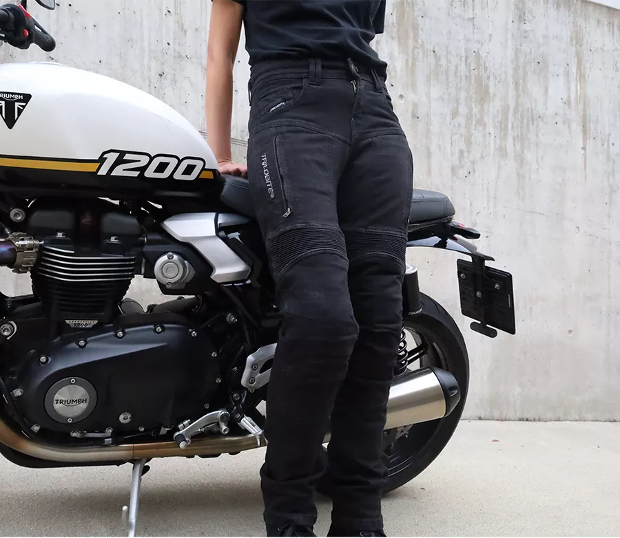 Materiál (vonkajšia vrstva) • TRI-STRETCHER® PRO 5.0 DENIM je špeciálnou zmesou Bavlny, Elastanu a Polyesteru. Ochrana: • Zóny dopadu sú vystužené druhou vrstvou TRI-STRETCHER® PRO 5.0 DENIM • CE level 2 chrániče kolien a bokov súčasťou • Výškovo nastaviteľné kolenné chrániče • CE Certifikované podľa EN 17092-2:2020, trieda AAA Ergonomické vlastnosti: • 2 predné vrecká, 2 zadné vrecká • Stretch vrstva v oblasti kolien, zadného pása a rozkroku • Dvojité pútka na opasok vpredu • Zvýšený pás Ventilácia: • Ventilačné vrecká na stehnách • Podyšný streč v oblasti sedu Parado Doublelayer AAAA sú dodávané v krabici spolu s vodeodolným vakom, ktorý sa skvele hodí pri cestovaní. Vlastnosti materiálu Tri-Stretcher® PRO 5.0 Denim Základnou myšlienkou bolo vyvinúť tkaninu, ktorá bude vynikať pohodlím, bezpečnosťou a zároveň splní náročné požiadavky na strih, opotrebenie, roztrhnutie, oteruvzdornosť a chemickú odolnosť finálneho výrobku pri CE Certifikačných testoch. Tri-Stretcher® PRO 5.0 Denim je špeciálnou zmesou Bavlny, Elastanu a Polyesteru patentovaná spoločnosťou Bikers Crown s.r.o., ktorá je výhradným vlastníkom materiálu a zároveň dizajnérom motocyklových džínsov Trilobite. Vďaka nedávnym prelomom v oblasti syntetických vlákien môžu byť džínsy pre jazdu na motocykli ľahšie ako kedykoľvek predtým. Nová generácia syntetických a polyetylénových vlákien umožňuje zmiešať Polyester, Nylon, Elastan a ďalšie priadze, napríklad aj prírodné, do úplne novej, sofistikovanej tkaniny na výrobu motocyklových džínsov Trilobite. Tri-Stretcher® PRO 5.0 Denim je moderná technická tkanina, ktorá je budúcnosťou jazdy na motocykli. Vyrába sa zo zmesi materiálov z rodiny polyamidov ako je Nylon a aromatických polyamidov, ako je Aramid alebo polyuretánové vlákna vyrobené z Elastanu, a zároveň zahŕňa prírodnú bavlnenú tkaninu. Táto látka je jedinečná svojou úžasnou pevnosťou a zároveň nízkou hmotnosťou. Tri-Stretcher® PRO 5.0 Denim je jeden „šikovný tím“ rôznych vlákien spletených dohromady, ktoré vás v prípade nehody ochránia rovnakým spôsobom ako celokožená kombinéza, ale bez kompromisu na pohodlie. Tieto džínsy sú vyrobené z dvoch vrstiev najodolnejšieho materiálu Tri-Stretcher 5.0 Denim. Jedna vrstva tohto materiálu spĺňa CE certifikačné požiadavky levelu AAA. Preto spojením dvoch vrstiev tejto látky vznikli zatiaľ najbezpečnejšie džínsy na svete.