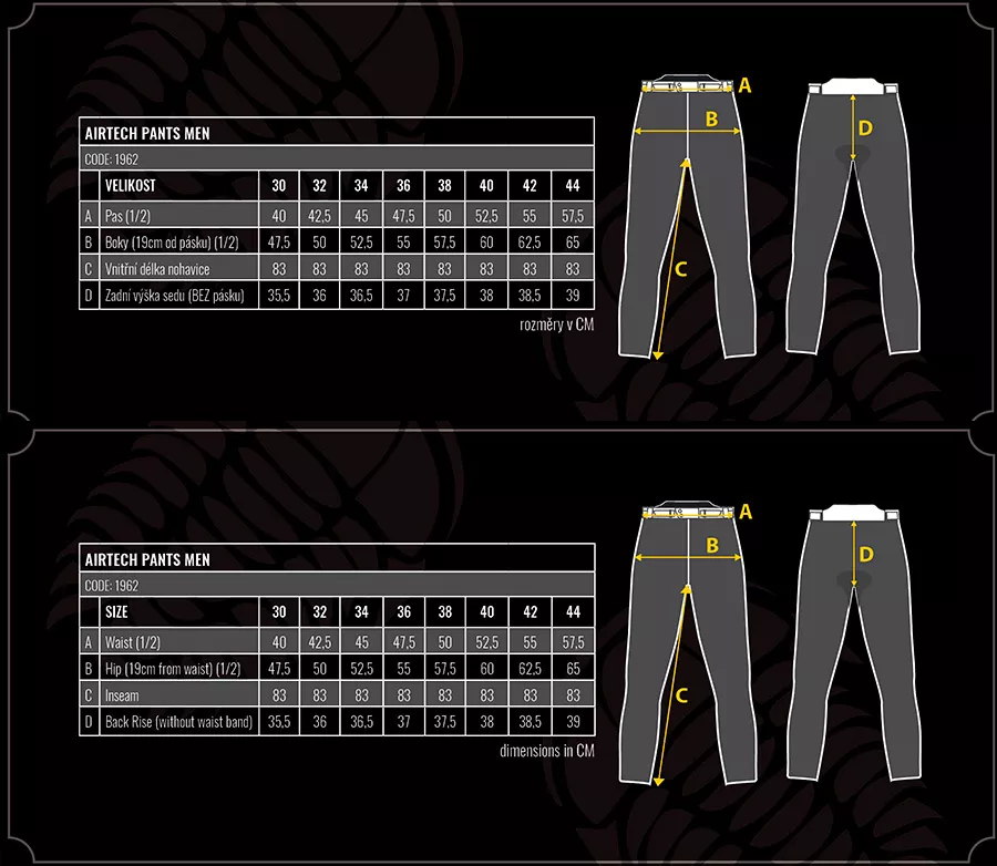 Trilobite Airtech nohavice vyrobené pre jazdcov, ktorí hľadajú maximálnu ochranu pri jazde na motocykli, od cestného cestovania až po rýdzej enduro. Vďaka kombinácii džínsoviny, strečového materiálu, sieťoviny, kože a oderuvzdorné podšívky v sede a na kolenách, ktorá je vyrobená z aramidových vlákien Kevlar® od výrobcu DuPont ™, sú AIRTECH nohavice správnou voľbou. Dokonalé odvetranie skvele funguje vďaka technológii Air Tech zo sieťoviny na bokoch a stehnách. Nohavice sú dodávané vrátane trakov s logami Trilobite, ktoré sú k nohaviciam pripnutý na dvojitá pútka v zadnej a prednej časti s veľkým suchým zipsom pre maximálne pohodlie pri ich manipulácii.