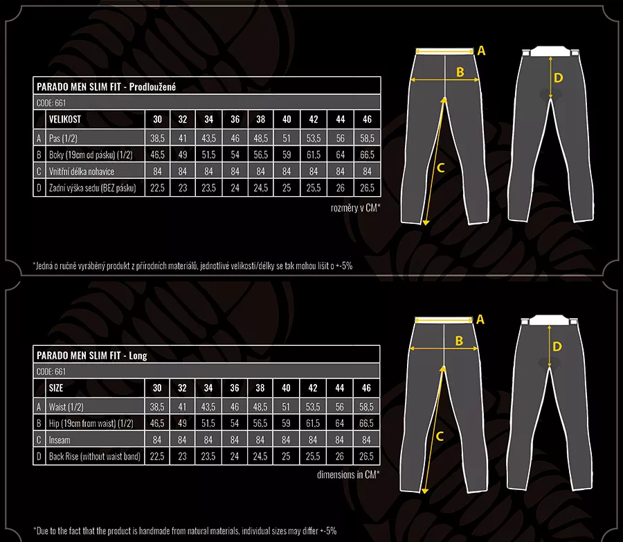 - v štandardnej aj predĺženej dĺžke - vonkajší materiál: 98% bavlna, 2% lycra - váha vonkajšieho materiálu: 12.5 oz - 100% DuPont Kevlar vystuženie - podšívka: 65% bavlna & 35% polyester - pružný materiál v rozkroku zaisťuje dvoudimenzní elasticitu a zaručuje komfort pohybu pri jazde na motocykli - vyrobené z elastoméru v kombinácii s polyamidovými vláknami - originálne YKK kovové zipsy na rázporku a na ventilačných vreckách - kovový gombík s logom Trilobite v páse - vpredu dvojitá pútka na opasok - v bedrovej oblasti zvýšený pás pre maximálny komfort pri jazde - chrániče CE Level 2 na kolenách a bokoch - certifikácia CE EN17092 trieda AA Pretože Trilobite tím verí v kvalitu a úroveň ochrany, ktorú jeho produkty poskytujú, rozhodol sa nechať model 661 Parado otestovať na bezpečnosť. Výsledky sú veľmi presvedčivé a dokazujú, že jeans sú naozaj bezpečným produktom. Jeans boli testované z hľadiska odolnosti proti oderu a roztrhnutiu. CHRÁNIČE CE Level 2 na kolenách a bokoch ZADARMO 100% KEVLAR Lycra by Dupont - na kolenách, bokoch a zadku - značkové aramidové vlákno pokrokové technológie Dupont, ktoré sa vyznačuje vysokou pevnosťou a odolnosťou v oderu - odolný proti roztrhnutiu - vysoký stupeň tavenia 450 ° C zaisťuje bezpečie v prípade vysokej trecie teploty STRETCH panel - zvyšuje optimálne pohodlie a umožňuje dvoudimenzní elasticitu - zaručuje komfort pohybu pri jazde na motocykli - vyrobené z elastoméru v kombinácii s polyamidovými vláknami vzduchová VENTILÁCIA - nevyhnutná ventilácia pre naozaj horúce letné dni - zvyšuje komfort a pohodlie pri jazde na motocykli