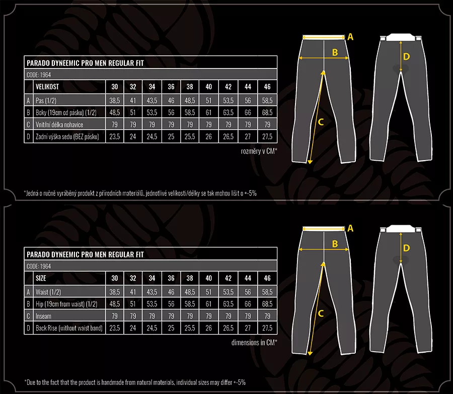 Parado, jeden z najobľúbenejších modelov motocyklových nohavíc v ponuke Trilobite, prichádza v novej špecifikácii materiáli. Ešte silnejší a odolnejší voči každodennému opotrebovaniu vďaka džínsovine s materiálom Dyneema®. Dokonca aj malá časť materiálu Dyneema® obsiahnutá v džínsach činí tkaninu oveľa silnejší. Parado Dyneema Pro obsahuje 13% Dyneema® materiálu, vďaka čomu sú džínsy odolné proti oderu po celom povrchu. Kritické zóny na kolenách a zadnej strane nôh sú podšité originálnymi aramidovými vláknami DuPont ™ Kevlar®, ktoré zaisťujú dodatočnú ochranu proti oderu. Strih a všetky ostatné konštrukčné a funkčné prvky zostávajú nezmenené. Originálne, vysoko kvalitné zipsy YKK sú použité v rozkroku a na vetracích vreckách. Veľké vetracie vrecká na stehnách poskytujú dostatočný prísun čerstvého vzduchu v prípade potreby. Strečové panely v kolenách, rozkroku a v páse zaisťujú maximálne pohodlie počas jazdy na motocykli aj mimo nej. Vysoká miera pohodlia je ešte umocnená prímesou elastanu, ktorý je obsiahnutý vo vnútri tkaniny. Toto je pravá voľnosť pohybu. Stále premýšľate o tom, že by ste si Parado džínsy zaobstarali? Vyskúšajte si ich a už nebudete chcieť žiadne iné. Džínsy Parado Dyneema Pre sú dodávané s chráničmi Trilobite CE level 2 na kolenách a bokoch, ktoré poskytujú vysokú úroveň bezpečnosti pri náraze. Tieto džínsy sú skutočne všestranným odevom. Budete je milovať bez ohľadu na to, či ich používate na dlhé cestovanie alebo krátke každodenné jazdenie z A do bodu B. • Vonkajší materiál: elastický Dyneema® denim s gramážou 11,5 oz, zloženie: 68% bavlna, 10% nylon, 8% polyester, 13% Dyneema, 1% elastan • Podšívka: Aramidová vlákna v oblasti kolien a sedu vyrobenú z materiálu Kevlar® vyrobeného progresívnou technológiou DuPont ™ Ochrana: • chrániče CE úrovne 2 na kolenách a bokoch • vlákna Dyneema® vnútri džínsoviny • Aramidová vlákna vyrobené z originálneho materiálu Kevlar® DuPont ™ v oblasti kolien a sedu Ergonomické vlastnosti: • 5 vreciek • Strečové panely nad kolenami, na zadnej strane pasu a v rozkroku • Nastaviteľná výška chráničov kolien • Dvojitá pútka v páse vpredu • Vyvýšený pás na zadnej strane ventilácia: • Vetracie vrecká na stehnách • Priedušný panel v rozkroku obal: • Vodeodolná prepravná taška Na čo sa hodí? Cestovanie, jazda po ceste, jazda v meste, Dostupné v pánskych veľkostiach (30 - 44) a dámskych (26 - 36) v štandardnej a predĺženej verzii. Perfektne sa hodí k bunde Parado a mikinám trilobite®. Farebné varianty: tmavo modrá / fluo Kevlar® a DuPont ™ sú ochranné známky alebo registrované ochranné známky spoločnosti E.I. du Pont de Nemours and Company.