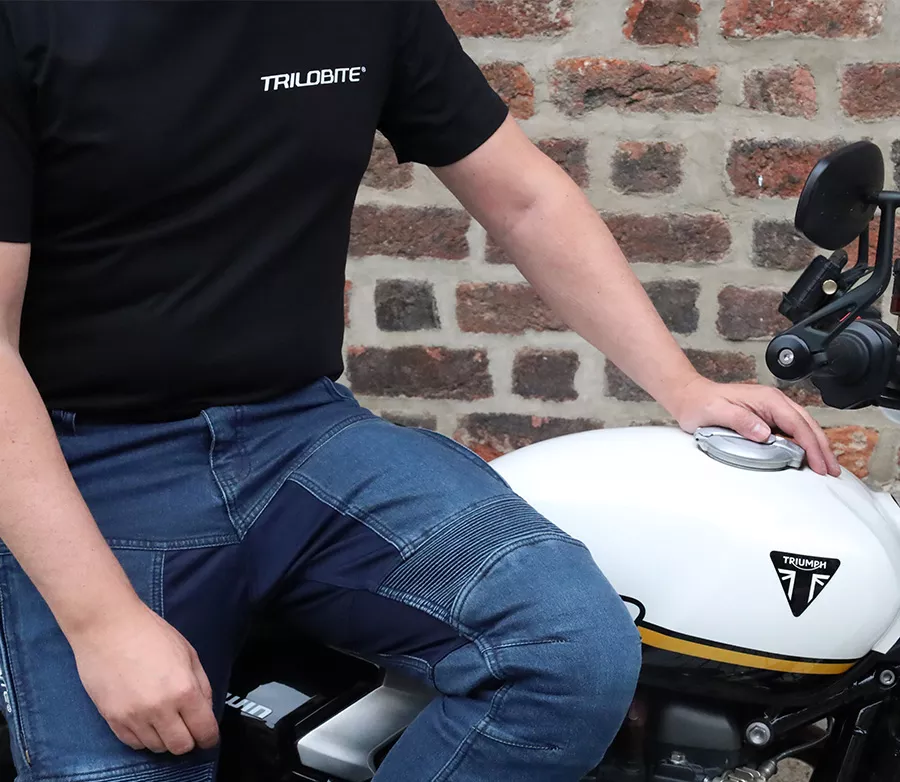 Materiál (vonkajšia vrstva) • TRI-STRETCHER® PRO 5.0 DENIM je špeciálnou zmesou Bavlny, Elastanu a Polyesteru. Ochrana: • Zóny dopadu sú vystužené druhou vrstvou TRI-STRETCHER® PRO 5.0 DENIM • CE level 2 chrániče kolien a bokov súčasťou • Výškovo nastaviteľné kolenné chrániče • CE Certifikované podľa EN 17092-2:2020, trieda AAA Ergonomické vlastnosti: • 2 predné vrecká, 2 zadné vrecká • Stretch vrstva v oblasti kolien, zadného pása a rozkroku • Dvojité pútka na opasok vpredu • Zvýšený pás Ventilácia: • Ventilačné vrecká na stehnách • Podyšný streč v oblasti sedu Parado Doublelayer AAAA sú dodávané v krabici spolu s vodeodolným vakom, ktorý sa skvele hodí pri cestovaní. Vlastnosti materiálu Tri-Stretcher® PRO 5.0 Denim Základnou myšlienkou bolo vyvinúť tkaninu, ktorá bude vynikať pohodlím, bezpečnosťou a zároveň splní náročné požiadavky na strih, opotrebenie, roztrhnutie, oteruvzdornosť a chemickú odolnosť finálneho výrobku pri CE Certifikačných testoch. Tri-Stretcher® PRO 5.0 Denim je špeciálnou zmesou Bavlny, Elastanu a Polyesteru patentovaná spoločnosťou Bikers Crown s.r.o., ktorá je výhradným vlastníkom materiálu a zároveň dizajnérom motocyklových džínsov Trilobite. Vďaka nedávnym prelomom v oblasti syntetických vlákien môžu byť džínsy pre jazdu na motocykli ľahšie ako kedykoľvek predtým. Nová generácia syntetických a polyetylénových vlákien umožňuje zmiešať Polyester, Nylon, Elastan a ďalšie priadze, napríklad aj prírodné, do úplne novej, sofistikovanej tkaniny na výrobu motocyklových džínsov Trilobite. Tri-Stretcher® PRO 5.0 Denim je moderná technická tkanina, ktorá je budúcnosťou jazdy na motocykli. Vyrába sa zo zmesi materiálov z rodiny polyamidov ako je Nylon a aromatických polyamidov, ako je Aramid alebo polyuretánové vlákna vyrobené z Elastanu, a zároveň zahŕňa prírodnú bavlnenú tkaninu. Táto látka je jedinečná svojou úžasnou pevnosťou a zároveň nízkou hmotnosťou. Tri-Stretcher® PRO 5.0 Denim je jeden „šikovný tím“ rôznych vlákien spletených dohromady, ktoré vás v prípade nehody ochránia rovnakým spôsobom ako celokožená kombinéza, ale bez kompromisu na pohodlie. Tieto džínsy sú vyrobené z dvoch vrstiev najodolnejšieho materiálu Tri-Stretcher 5.0 Denim. Jedna vrstva tohto materiálu spĺňa CE certifikačné požiadavky levelu AAA. Preto spojením dvoch vrstiev tejto látky vznikli zatiaľ najbezpečnejšie džínsy na svete.