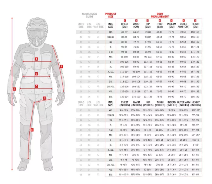 (cm)79-83 83-87 87-91 91–95 95–99 99-103 103–107 107-111 111–115 115–119 119–123 123–127 127-131 D. Stehno (cm) 48–49 50 - 51 52 - 53 54–55 56-57 58–59 60-61 62-63 64–65 66-67 68-69 70-71 72-73 E. Vnitřní šev (cm) 71-72 73-74 75-76 77-78 79-80 81-82 83-84 85-86 87-88 89-90 89-90 91-92 91-92 F. Vnější rameno (cm) 49–50 51-52 53–54 55–56 57-58 59 - 60 61-62 63-64 65-66 67-68 67-68 69-70 69-70 G. Výška (cm) 150–156 157-163 164–167 168-171 172–175 176–179 180–183 184–187 188–191 192–195 192–195 196–199 196–199 Pánske velikosti bot ALPINESTARS