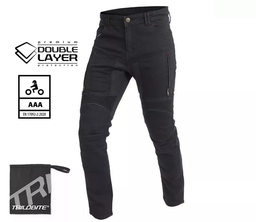Ďalší člen rodiny Parado, ktorý teraz neobsahuje kevlarovú vrstvu. Parado Doublelayer AAA džínsy sú podšité novým materiálom Tri-Stretcher® PRO 5.0 Denim na strategických miestach – kolená, boky a zadok. Tento materiál sám v jednej vrstve spĺňa najprísnejšie certifikačné požiadavky triedy AAA. Týmto spojením vznikli džínsy, ktoré sú na vrchole bezpečnosti, čo sa týka oteruvzdornosti. - Vrchný materiál: elastický denim 11,5 oz, 98% bavlna, 2% elastan - Podšité Tri-Stretcher® PRO 5.0 Denim na strategických miestach - CE level 2 chrániče kolien a bokov súčasťou - Kolenné chrániče je možné posúvať do strán a na potrebnú výšku. - 2 predné, 2 zadné - zapínanie na 2 gombíky a zips - ventilačné vrecká na stehnách - priedušný streč v oblasti sedu - originálne YKK kovové zipsy na poklopci a na ventilačných vreckách - kovový gombík s logom Trilobite v páse - vpredu dvojité pútka na opasok - v bedrovej oblasti zvýšený pás pre maximálny komfort pri jazde - zvýšená zadná časť pása pre komfort pri jazde - CE Certifikované podľa EN 17092-2:2020, trieda AAA - dostupné v pánskom a dámskom strihu av niekoľkých farbách Vlastnosti materiálu Tri-Stretcher® PRO 5.0 Denim Základnou myšlienkou bolo vyvinúť tkaninu, ktorá bude vynikať pohodlím, bezpečnosťou a zároveň splní náročné požiadavky na strih, opotrebenie, roztrhnutie, oteruvzdornosť a chemickú odolnosť finálneho výrobku pri CE Certifikačných testoch. Tri-Stretcher® PRO 5.0 Denim je špeciálnou zmesou Aramidu, Nylonu, Polyesteru, bavlny a Elastanu patentovaná spoločnosťou Bikers Crown s.r.o., ktorá je výhradným vlastníkom a materiálom a zároveň dizajnérom motocyklových džínsov Trilobite. Vďaka nedávnym prelomom v oblasti syntetických vlákien môžu byť džínsy pre jazdu na motocykli ľahšie ako kedykoľvek predtým. Nová generácia syntetických a polyetylénových vlákien umožňuje zmiešať Polyester, Nylon, Elastan a ďalšie priadze, napríklad aj prírodné, do úplne novej, sofistikovanej tkaniny na výrobu motocyklových džínsov Trilobite. Tri-Stretcher® PRO 5.0 Denim je moderná technická tkanina, ktorá je budúcnosťou jazdy na motocykli. Vyrába sa zo zmesi materiálov z rodiny polyamidov ako je Nylon a aromatických polyamidov, ako je Aramid alebo polyuretánové vlákna vyrobené z Elastanu, a zároveň zahŕňa prírodnú bavlnenú tkaninu. Táto látka je jedinečná svojou úžasnou pevnosťou a zároveň nízkou hmotnosťou. Tri-Stretcher® PRO 5.0 Denim je jeden „šikovný tím“ rôznych vlákien spletených dohromady, ktoré vás v prípade nehody ochránia rovnakým spôsobom ako celokožená kombinéza, ale bez kompromisu na pohodlie.
