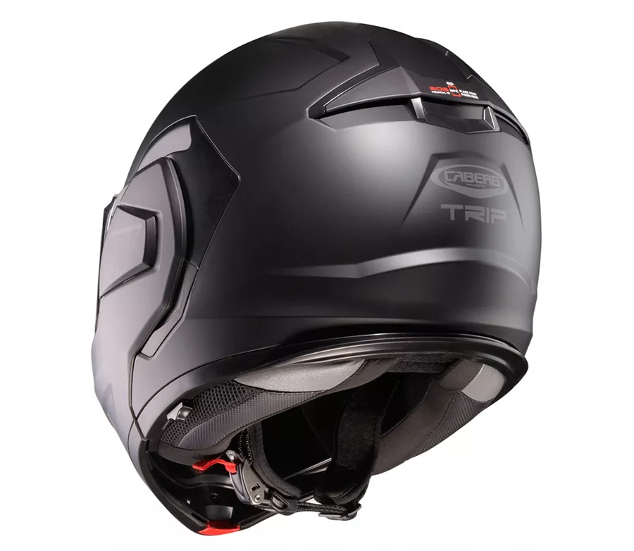 Caberg TRIP je flip-back prilba značky Caberg s otočnou bradovou časťou, ktorá sa pri otvorení preklopí o 180 ° dozadu. Vďaka homologizácii ECE 22.06 P/J je možné ju používať ako integrálnu aj otvorenú helmu. Je ideálnou voľbou pre cestovanie aj každodennú jazdu, kde oceníš jej variabilitu a komfort.