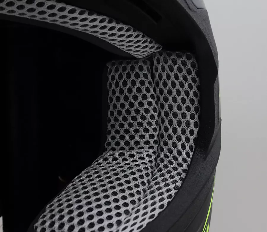 Helma je vyrobená z odolnej polykarbonátovej škrupiny s aerodynamickým tvarom, ktorý prispieva k stabilite pri jazde. Vďaka jednej veľkosti škrupiny a dvom variantom EPS výplní ponúka dobré usadenie na hlave a vysokú úroveň ochrany pri nízkej hmotnosti. Vnútorná výstelka je vyberateľná a prateľná, samozrejmosťou je homologácia ECE 22-06. Bezpečie • Polykarbonátová škrupina • Aerodynamický tvar škrupiny • Jedna veľkosť škrupiny • Dve veľkosti EPS výplní pre absorpciu nárazu • Homologácia ECE 22-06 Pohodlie • Jemná vnútorná výstelka • Vyberateľná a prateľná vnútorná výstelka • Lícne vypchávky so znížením hluku • Nízka hmotnosť cca 1300 ± 50 g Zapínanie • Opasok s mikrometrickou prackou